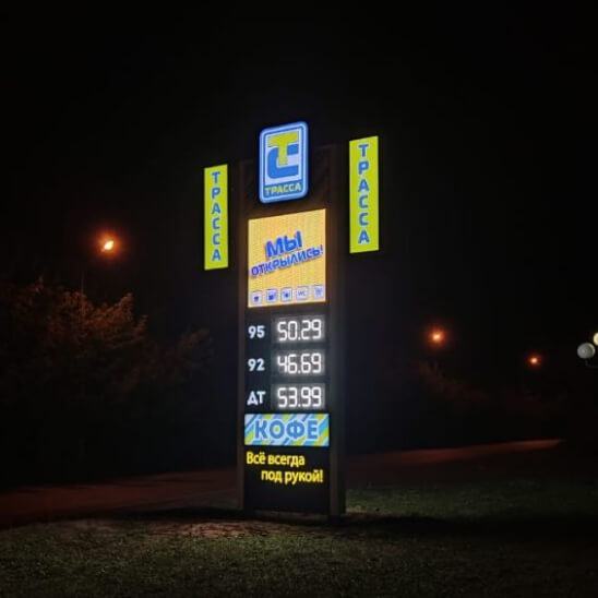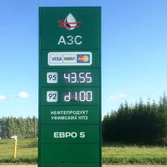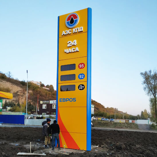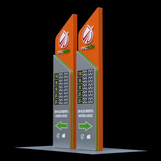 Стандартное решение с классической формой и оптимальной обзорностью. Идеальны для сетевых автозаправок и экономичных проектов. Обычно комплектуются световой рекламой для обеспечения хорошей видимости в ночное время.