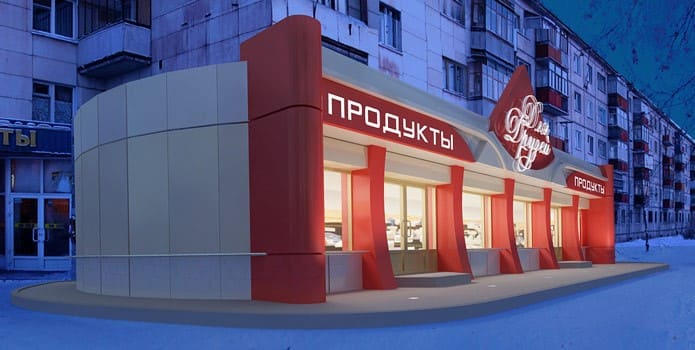 Хороший вариант вывески — указать категорию магазина. Надписи «Продукты» или «Продуктовый магазин» знакомы всем с детства и безошибочно считываются потенциальными покупателями.