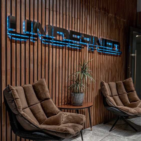 Популярное направление в интерьерной рекламе 2020–2022 годов. Сегодня такие вывески производятся из безопасного светодиодного неона, который не требует высокого напряжения, не содержит ртути и работает бесшумно. Неоновые конструкции особенно востребованы для оформления развлекательных заведений — баров, ресторанов, кафе, а также организаций, работающих с клиентами в вечернее время.