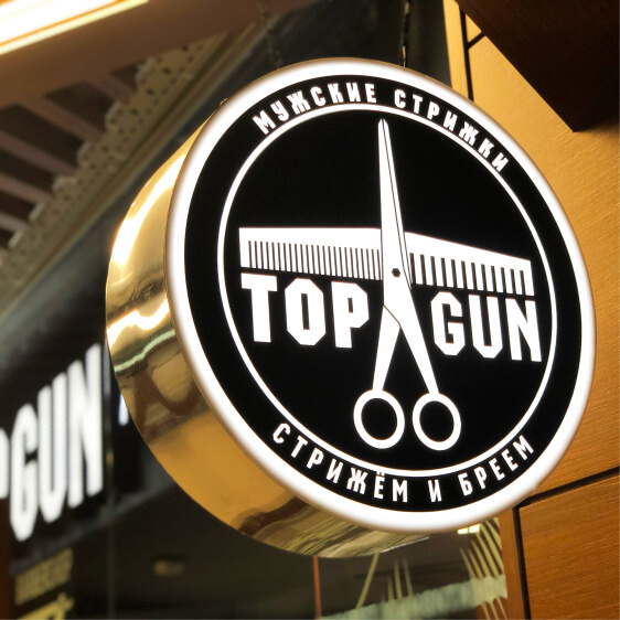 Является эффективным дополнением к основной вывеске. В некоторых случаях это единственно возможный вариант из-за недостатка места на фасаде. Стандартный размер панели-кронштейна — от 50 до 70 см в диаметре. Конструкция закрепляется перпендикулярно дороге, что позволяет видеть рекламное поле с двух сторон. Это помогает компании привлекать внимание пешеходов, движущихся вдоль улицы.